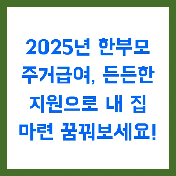 2025년 한부모 주거급여, 든든한 지원으로 내 집 마련 꿈꿔보세요!