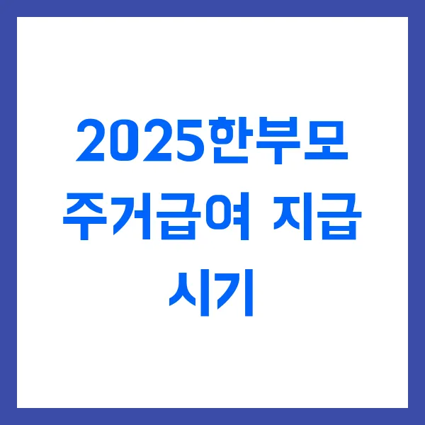 2025년 한부모 주거급여 지급 시기, 언제일까요?