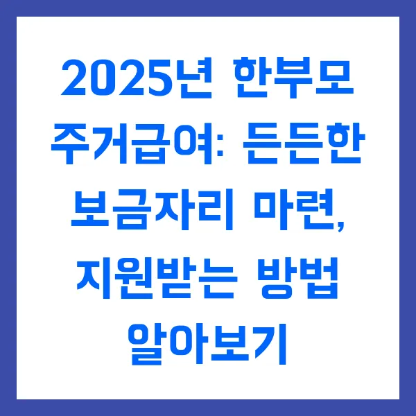 2025년 한부모 주거급여: 든든한 보금자리 마련, 지원받는 방법 알아보기